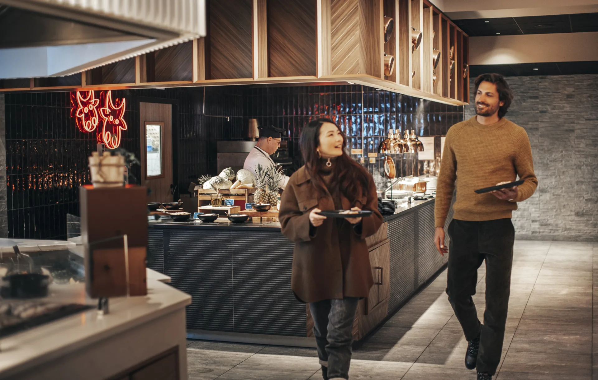 Główna restauracja Le Bellevarde została zaprojektowana w stylu hali targowej, z wyraźnie wydzielonymi stacjami live cooking w ramach Signature Buffet Club Med. W menu łączą się dania międzynarodowe z alpejskimi i sabaudzkimi specjalnościami, oparte na najlepszych lokalnych produktach, a wystrój subtelnie nawiązuje do architektury Val d’Isère.
